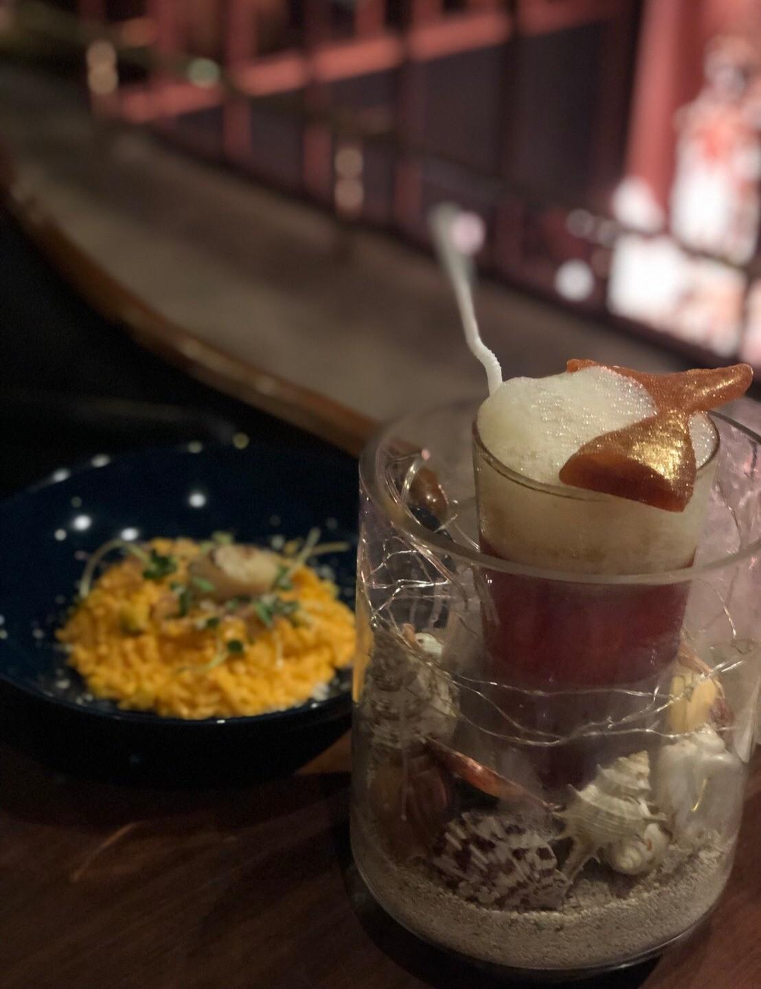 🍸The Little Mermaid 小美人魚 - 用玻璃罐裝著貝殼與沙和真正的主角,酸甜口感也是好喝順口,應該有檸檬和洛神花在裡面:)