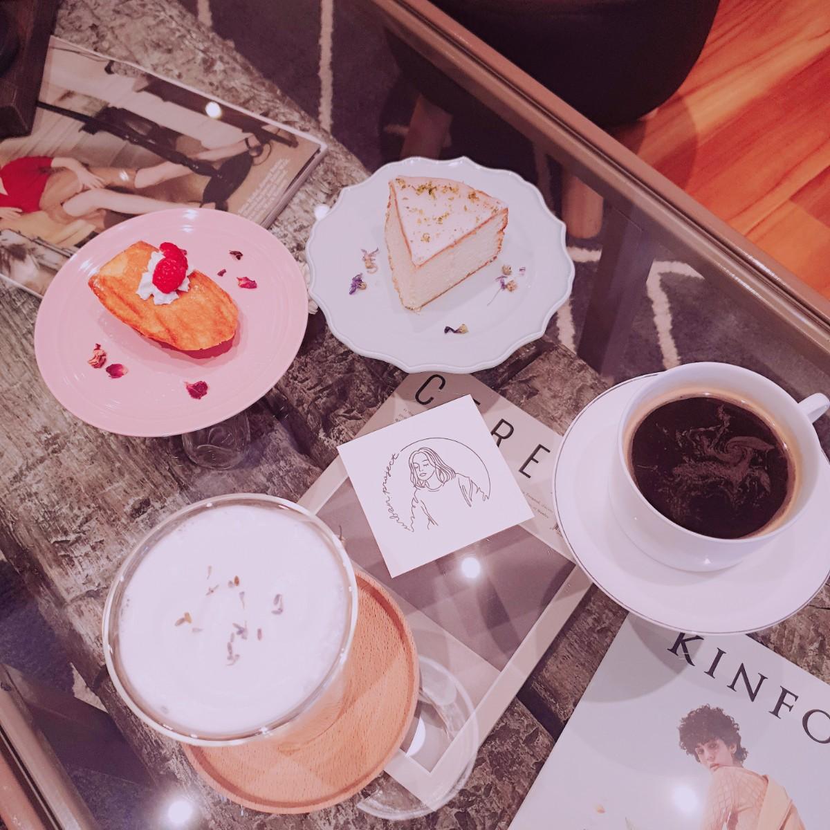 甜點都是老闆娘的媽媽親手製作,紮實綿密的口感,和咖啡一樣,都落在百來元左右,我個人覺得有一點太便宜了😝每一樣甜點上,都有浪漫的花朵裝飾,一早就覺得我的少女心在奔騰,好害羞😉