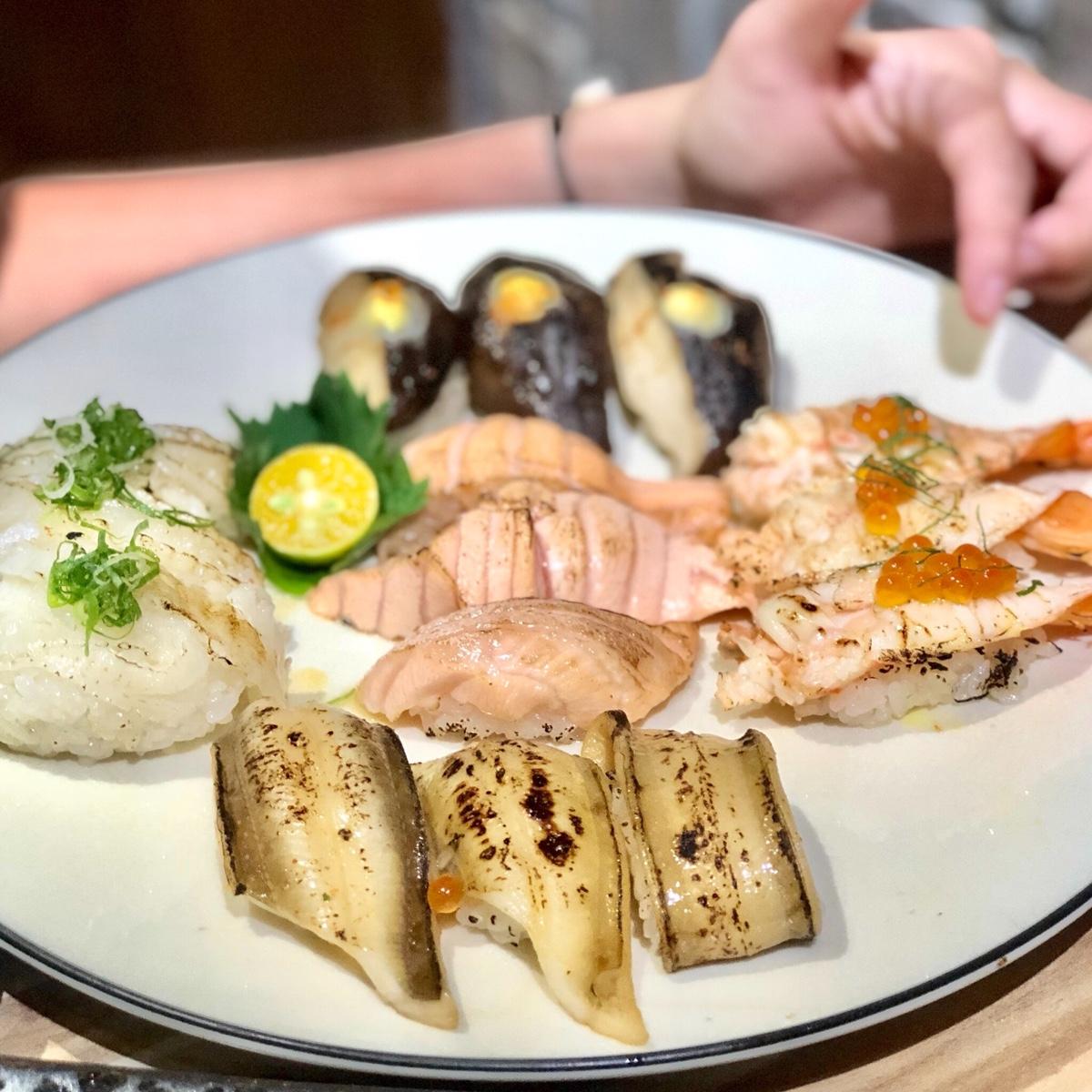 比目魚油脂在嘴內劃開帶炙燒香氣、星鰻口感軟綿、大蝦肉質彈牙、香菇軟嫩,五種都非常好吃😋
