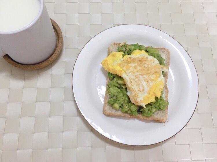 切好酪梨用成泥 平鋪在吐司上 撒點黑胡椒提味