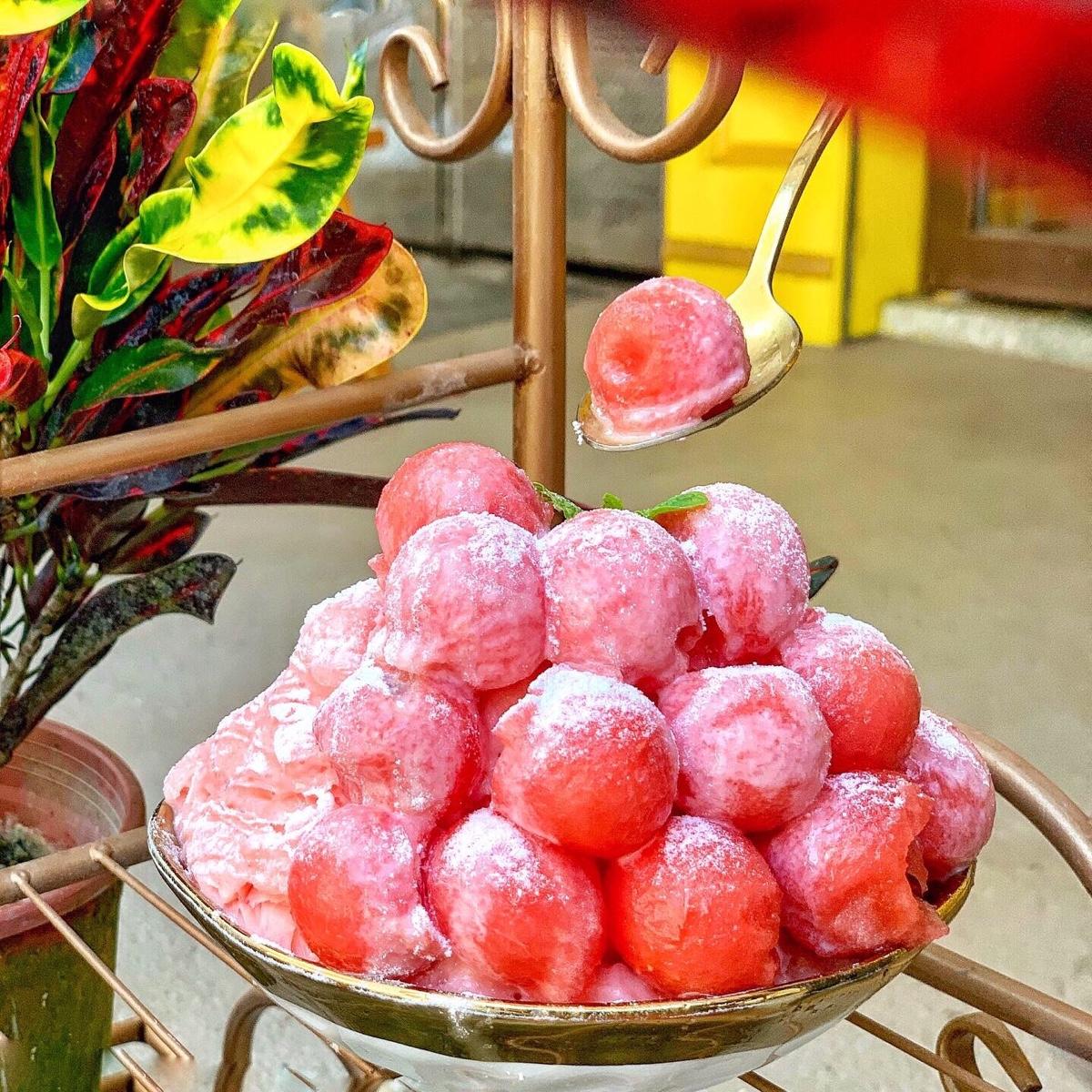 高雄盛夏必吃冰品#花蓮大西瓜 啊啊啊啊!吃了瞬間敲涼爽❄️西瓜牛奶雪花冰加上半面的花蓮特選西瓜果肉球,每口都好清爽,夏天吃絕對消暑爆٩(˃̶͈̀௰˂̶͈́)و