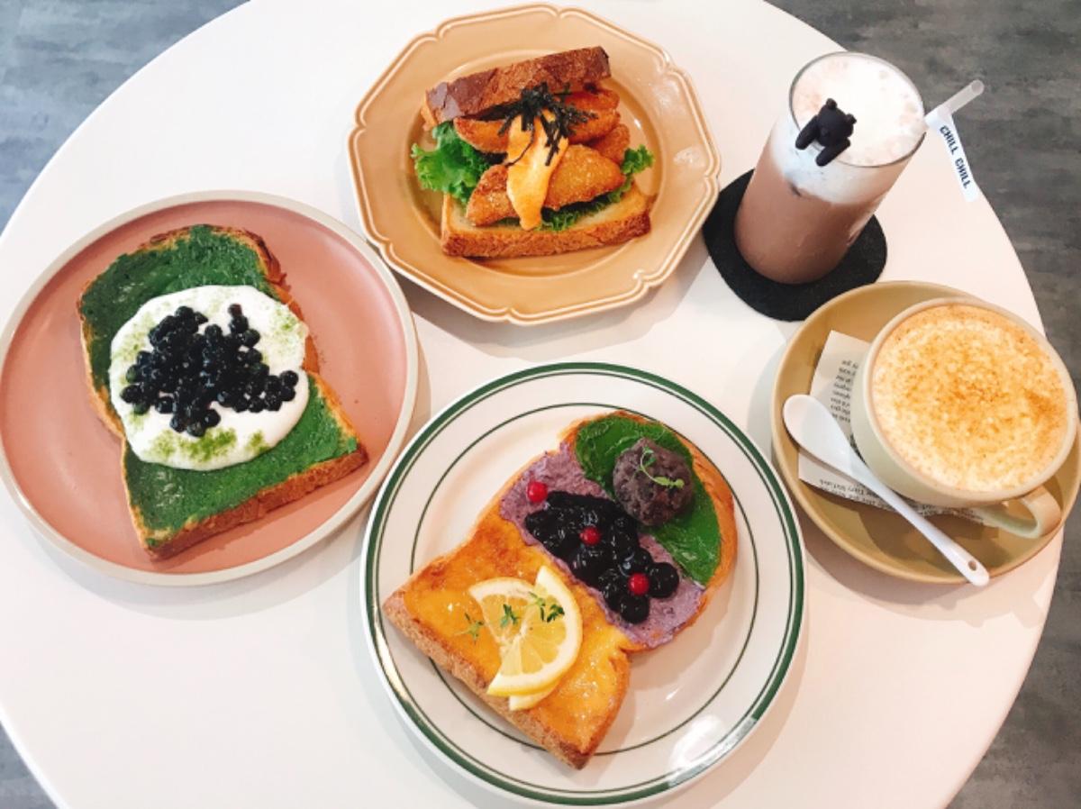 #台中 #網美景點 #韓系咖啡廳 #Chillchill抹醬 #日式抹茶珍珠山形吐司 #手工明太子炸魚條脆皮吐司 就是一個拍照很好看的地方囉☺️