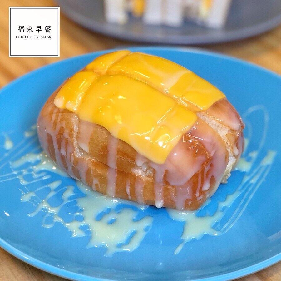 上頭鋪了一層厚厚的起司還淋上了煉乳好罪惡