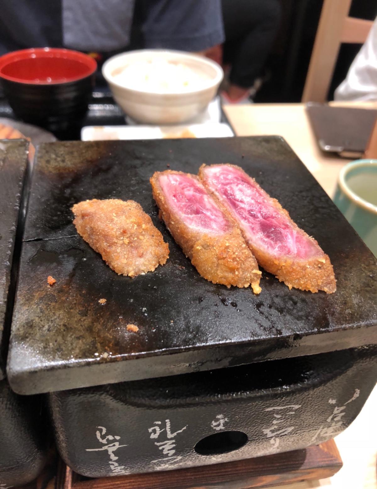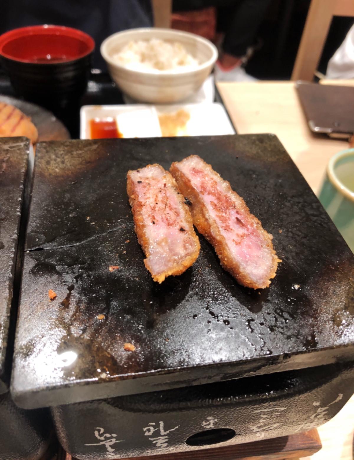 店裡就只賣炸牛排,牛排的話,師傅會先炸過,上桌後要再放上石烤板上煎,可以自行調整熟度,接著再沾上醬汁食用,這個外酥內嫩的口感就是最銷魂的地方😍