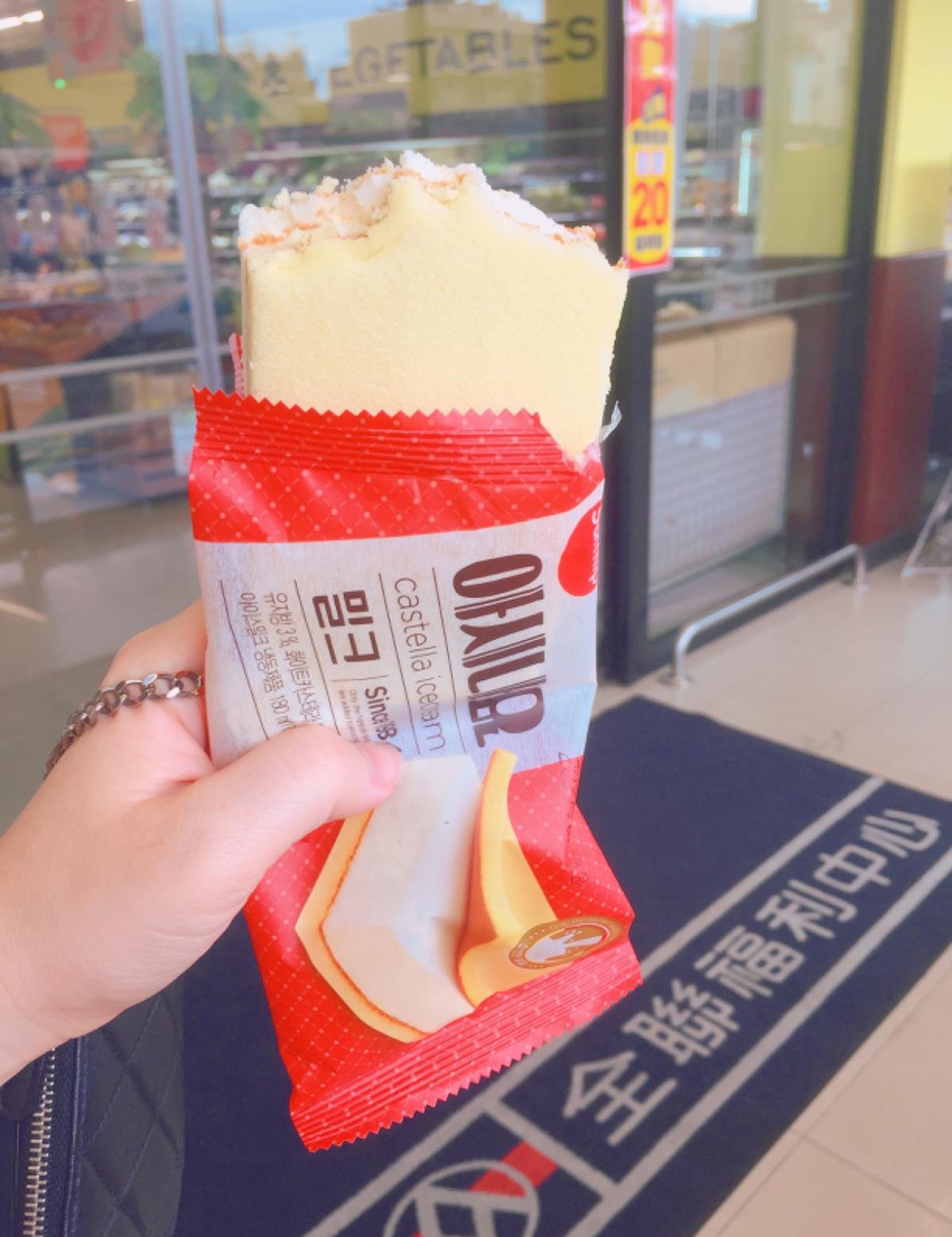 韓國Castella ice cream👈🏻這個完全我的菜💗 其實類似義美銅鑼燒冰淇淋 ,但是不管是蛋糕部分或是冰淇淋部分,都更好吃😋👍🏻 #全聯甜點 #カステラ