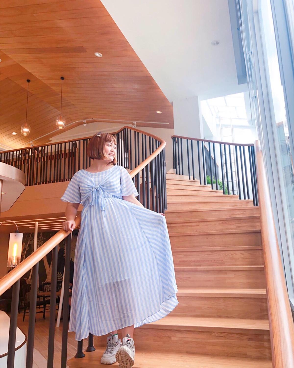 裡頭高挑設計裝潢加上一旁長長的樓梯整個好好拍
