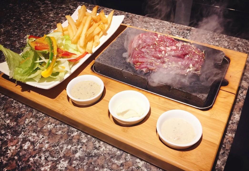 👉🏻我們點了岩烤牛排、培根青椒披薩,岩烤牛排送上桌的時候,我們口水都快要流下來,鮮嫩多汁的牛肉+新鮮蔬果沙拉,清爽不油膩,還能自己控制牛肉的熟度,披薩也是好吃到沒話說,不誇張,每一口都吃得到青椒跟培根,牽絲的起司,每一口都是享受。💕