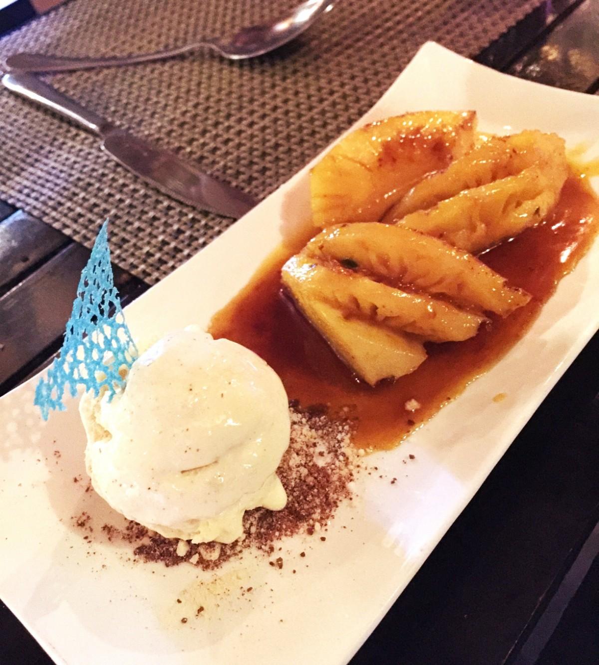 送上來的時候跟我想像中的不一樣😂,鳳梨竟然是熱的!!本來有點點失落~但吃了一口之後,眼睛為之一亮🤩,太好吃拉!!!兩種搭配在一起吃進口中,冰淇淋瞬間因著鳳梨融化,而鳳梨被冰淇淋包覆之後,變得很滑順,酸中帶甜,初戀的感覺!😂很值得吃吃看!
