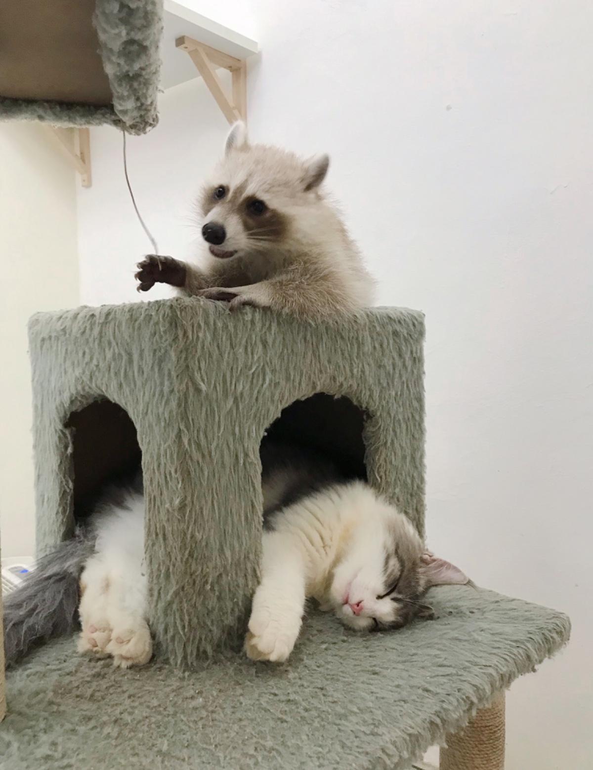 牠還有一個家人是浣熊,是我來這家的重頭戲❤️