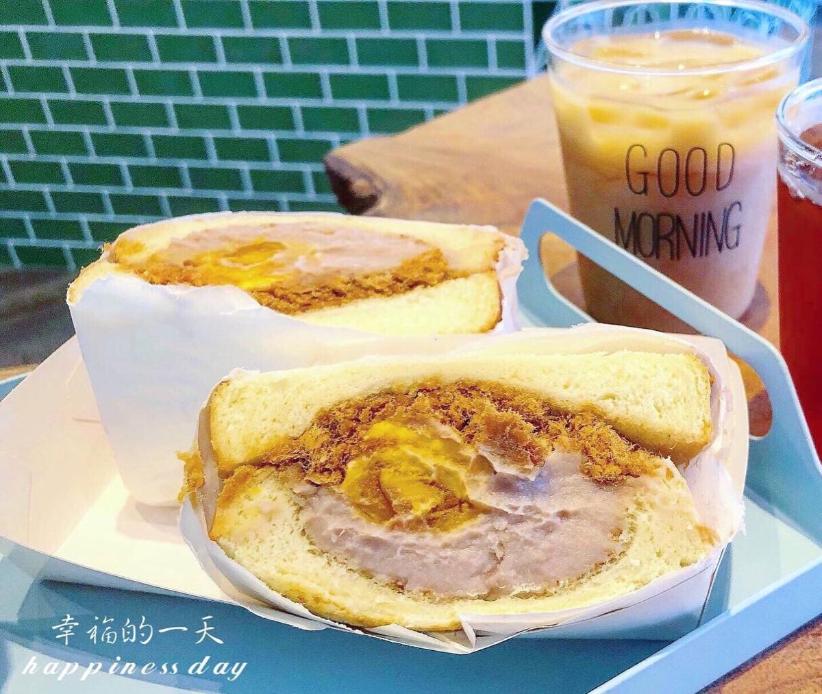 芋泥鹹蛋黃肉鬆三明治,個人覺得鹹蛋黃真的跟芋泥蠻搭的,鹹甜鹹甜的不錯,整體口味算偏淡一些,因為我個人吃重口味,但是個人還是可以接受,吐司部份不乾有濕度好吃。