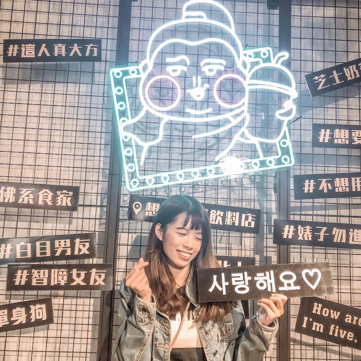 店裡有提供大概四五個座位可以點了飲料坐著喝,店內還有ㄧ面很好拍的打卡牆,各種標語字版都可以隨意拿起來拍照哦📷然後我自己覺得這家飲料店的logo真的蠻可愛又逗趣的😋