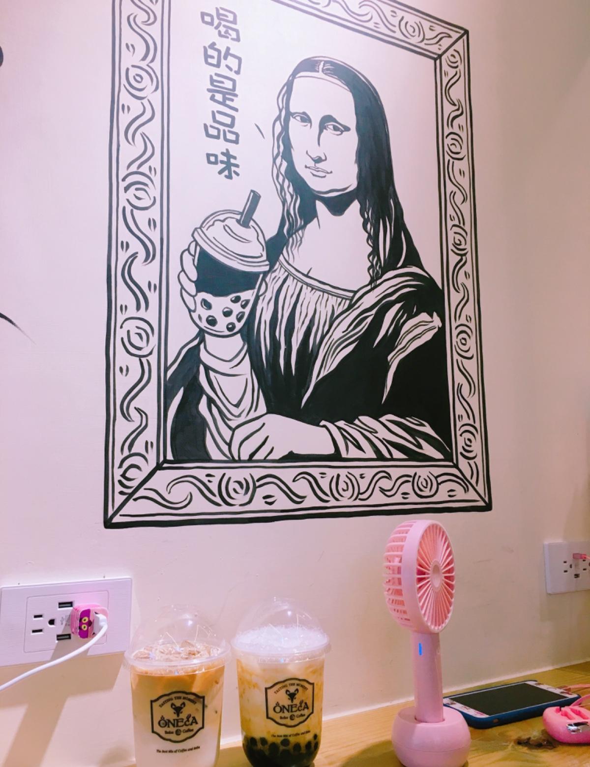ONECA 1 / 4這裡的裝潢很特別很酷~燈管設計🌟壁畫很搞笑可愛風然後我是喝丸咖拿鐵☕️覺得好喝~💖然後座位還有提供充電真的太方便啦!! 喔雅萱👩🏻🦱分享吃喝玩樂❤️花蓮🐷平常有事沒事就是愛吃愛玩抒壓的阿萱吃貨~