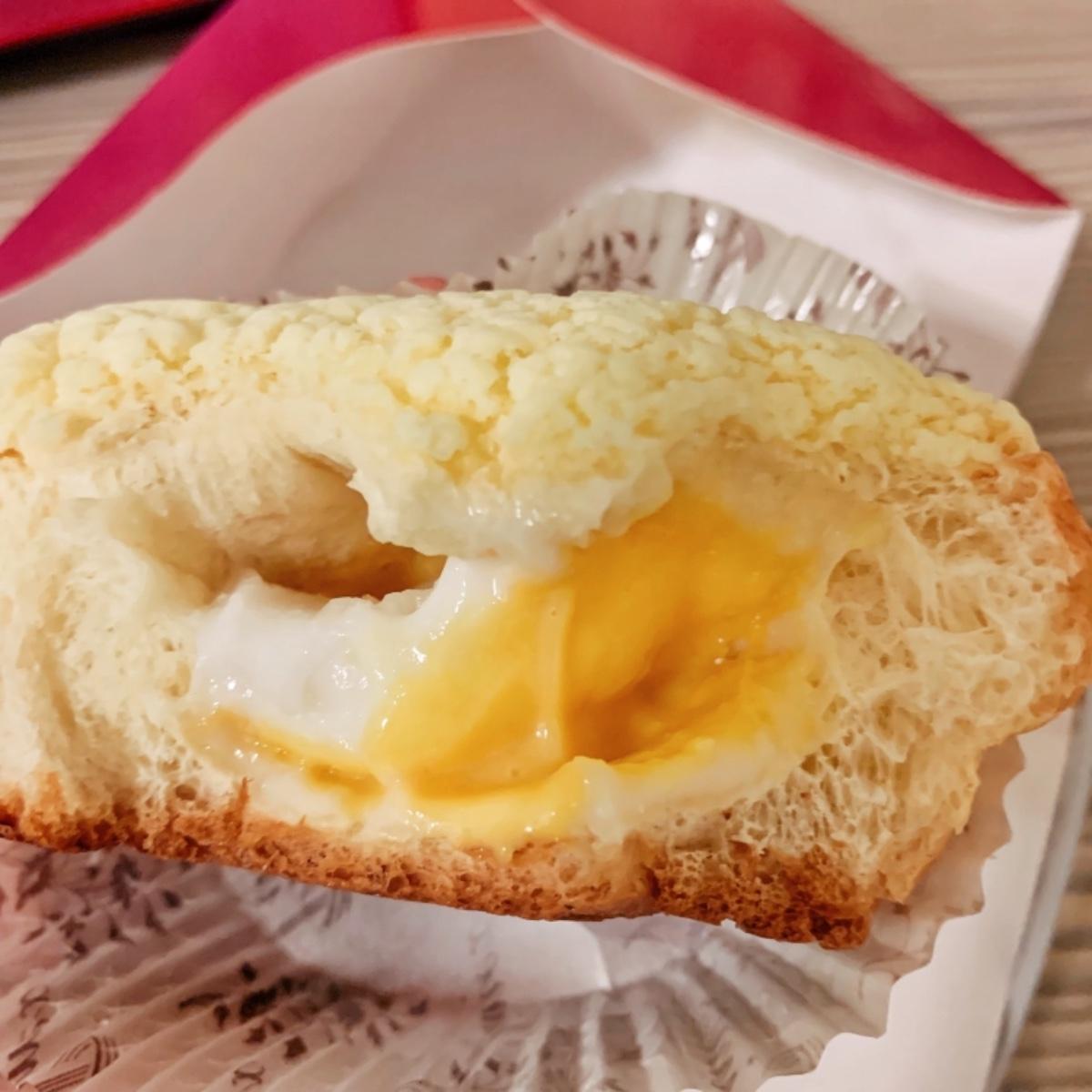 菠蘿麵包內包著鹹奶黃餡和Q彈的麻糬,每咬一口都會拔絲一次,因為我個人很喜歡鹹蛋黃,這個鹹甜鹹甜的味道很合我意。