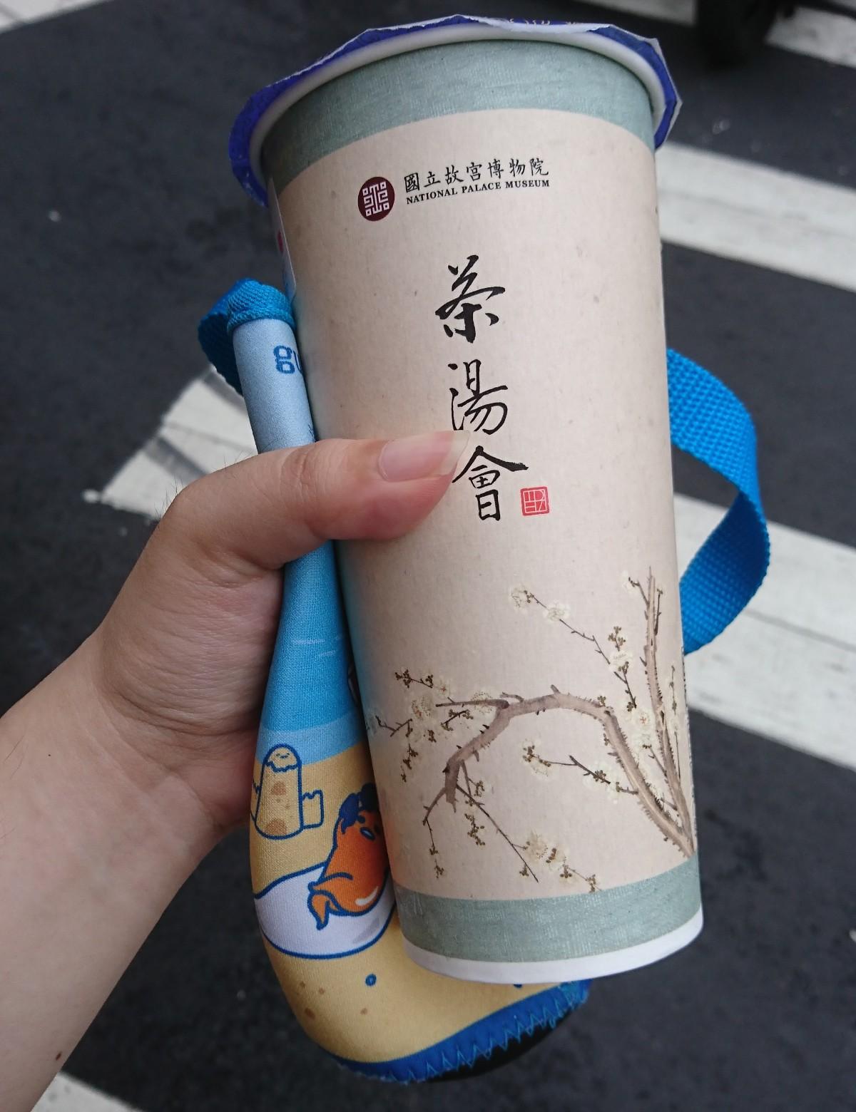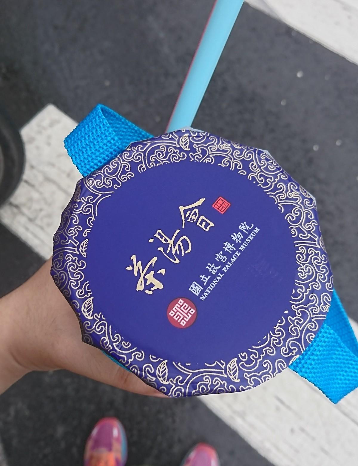 茶湯會與超有梗的故宮合作的包裝,看起來又美有有趣 封模部分仿絨布感,非常有質感,不過相對而言比較厚,要稍微用力插吸管才戳破 杯身的圖案跟文字很有趣