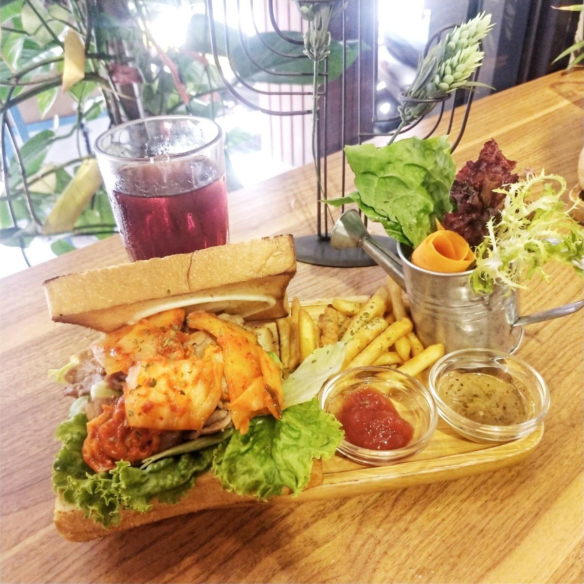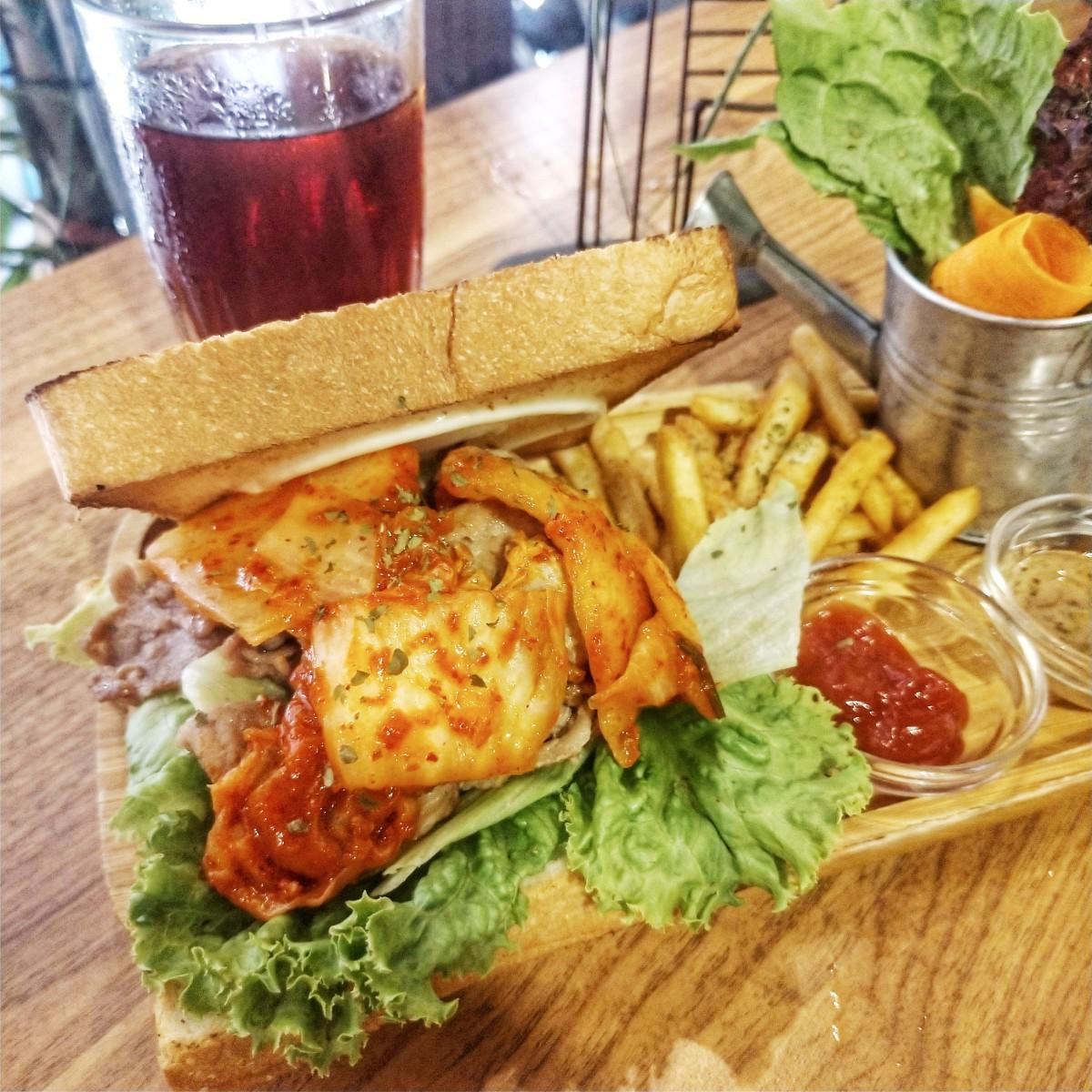 上下麵包烤的超酥脆,一口咬下滿滿的泡菜跟豬肉超過癮,女生可以吃的很飽😜
