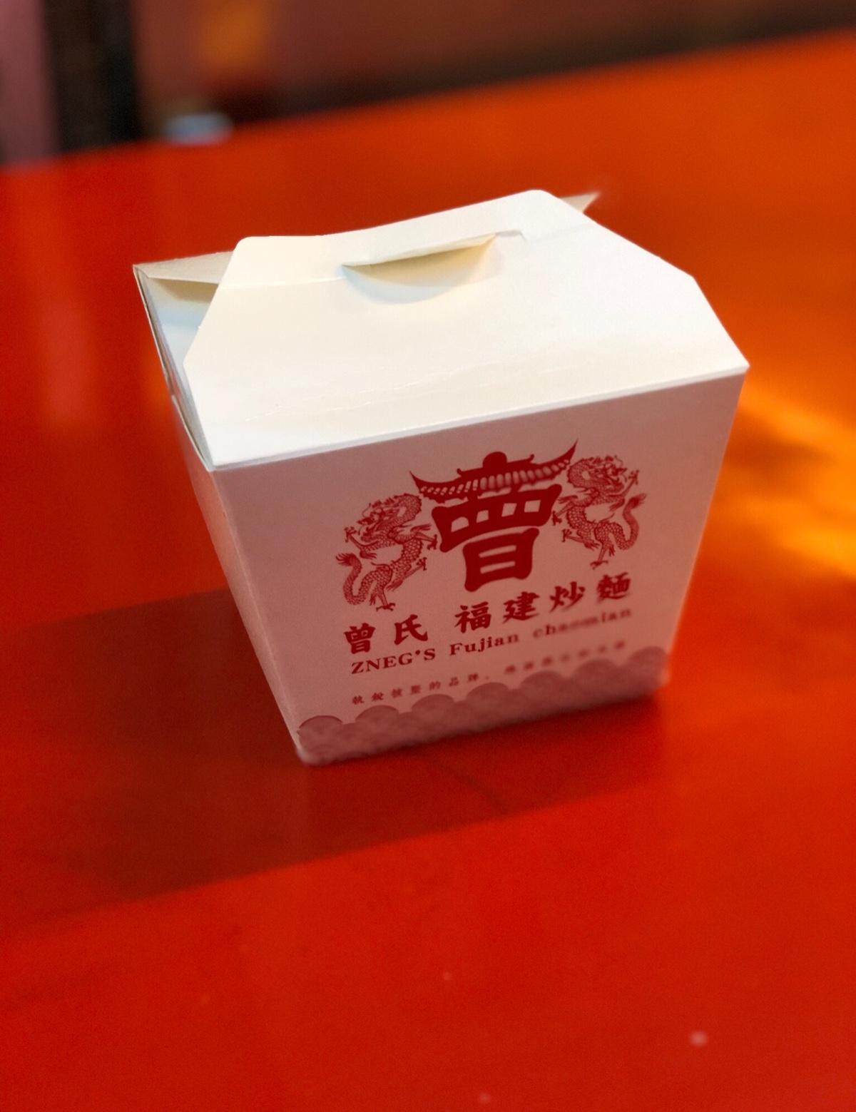 這間網路上很多人推說有小鮮肉店員而且太晚來就要排很久的「曾氏福建炒麵」要價💲90。份量不算少,配料有肉片、高麗菜🥬、豆芽菜、魷魚🦑跟蝦子🦐。麵條是細麵,醬汁偏淡,若是喜歡重口味的朋友可以加店家提供的泰式甜辣椒醬,酸酸辣辣會比較開胃!🤓