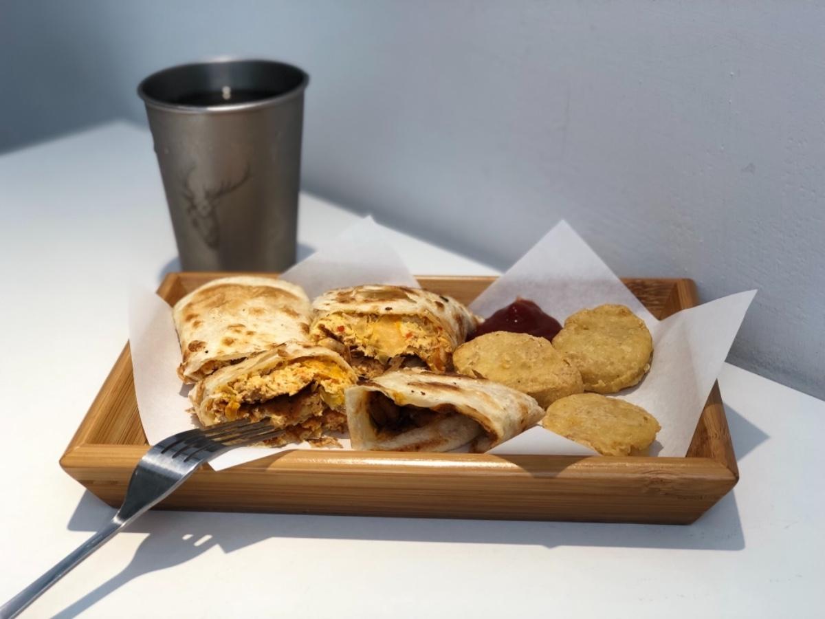 手作漢堡肉蛋土司➕手作泡菜雞肉蛋餅➕雞塊➕2杯中杯紅茶。