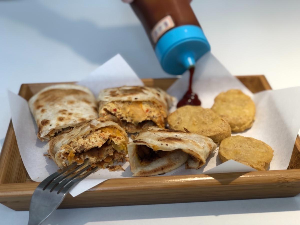 蛋餅的外皮很酥脆配上酸辣度很夠的泡菜,一早就好開胃😜😜