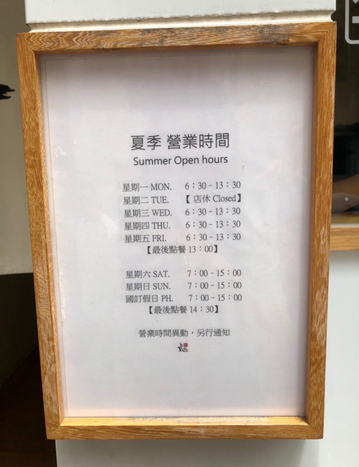 🈺️週一-週五06:30-13:30、週六-週日07:00-15:00(夏季營業時間)