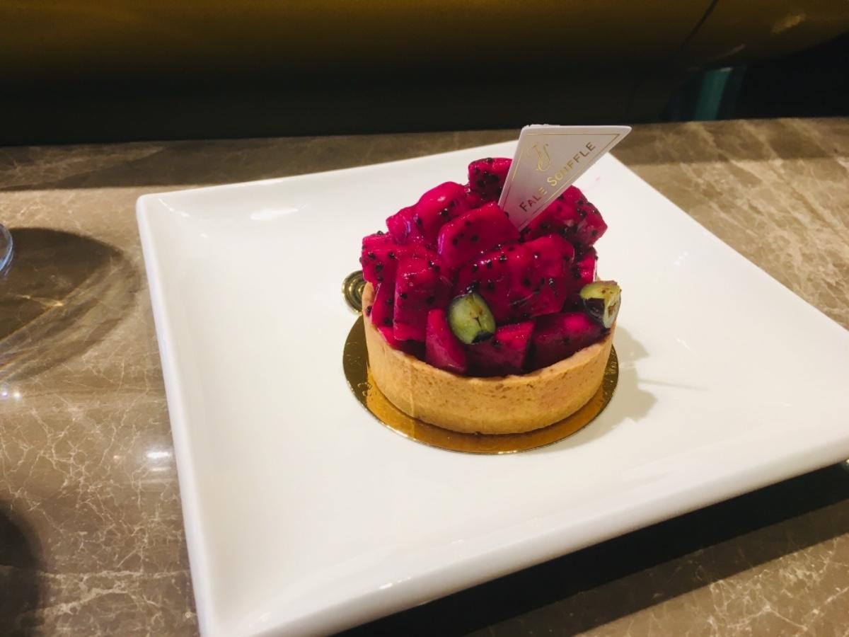這一個我直接給五顆星 真的是很少看到火龍果的塔 覺得狠特別 外面有滿滿新鮮的火龍果 塔裡有火龍果庫利 這個很特別 口感很彈 搭配奶油乳酪優格餡和杏仁塔皮 我覺得酸酸甜甜的真的是好滋味 很推