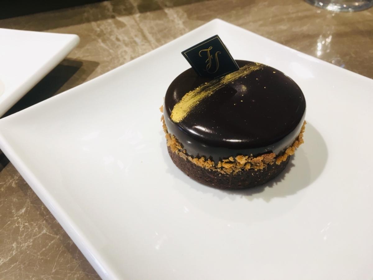 這個我也很推 本來以為會很甜 但是我錯了 非常的剛好 吃完一口會有巧克力的苦味 讓嘴巴很回甘 很有層次 外面是68%法芙娜純苦巧克力 裡面有甘納許 阿里山頂級烏龍冬茶 36%CACAO BARRY牛奶巧克力脆片和達克瓦茲杏仁蛋糕體及法式巧克力薄塔皮 完全每一口 每一秒豆有不同的味覺享受