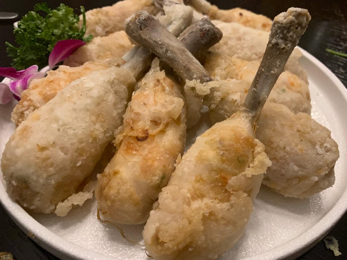評價:豬絞肉包裹成雞腿,尾端插入豬肋骨,口感綿密加上甜辣醬,值得推薦