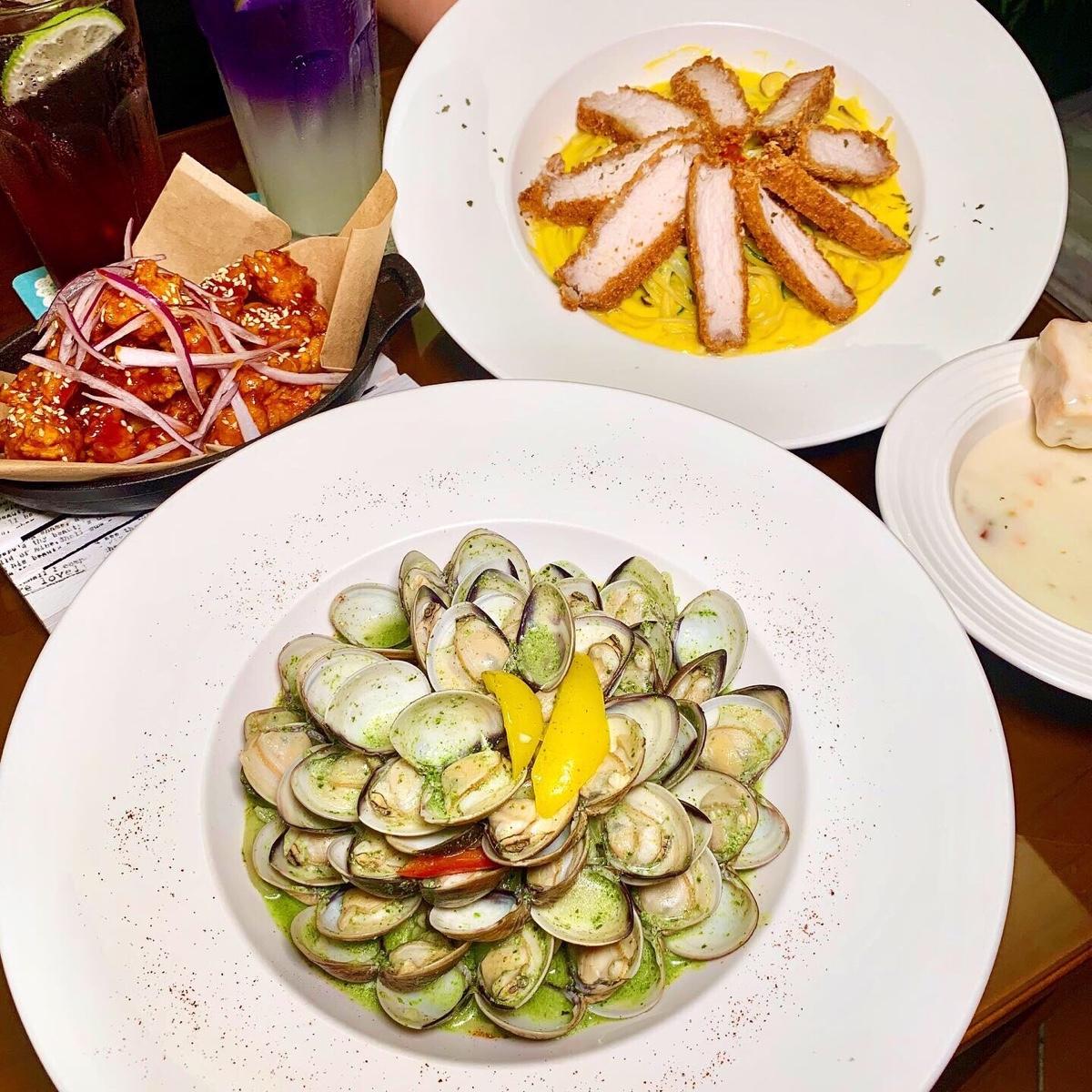 青醬義大利麵吸飽蛤蜊的鮮鹹 醬汁偏稀