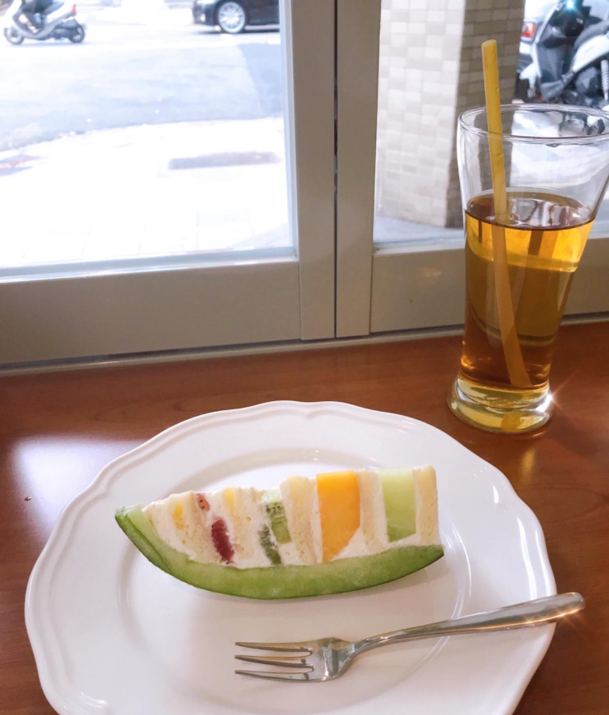 這個不多說必點!想吃已久的漂亮甜點啊~但今天發現實體比網路上大家的照片小了一號🤣但真的很好吃,綿綿的蛋糕每一口都有哈密瓜的香氣,水果很新鮮,日式奶油也很棒😍