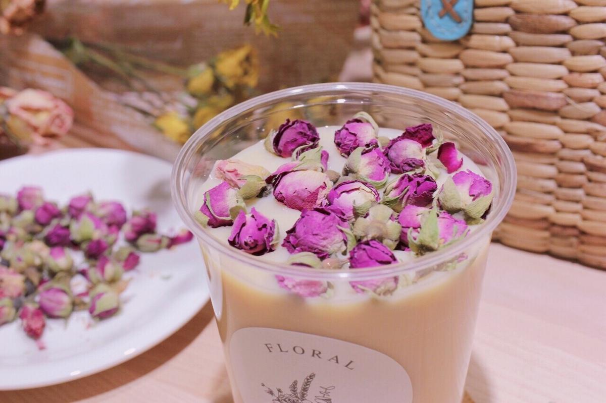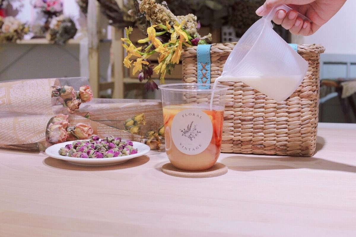 店主特調的乾燥花鮮奶茶販售囉!