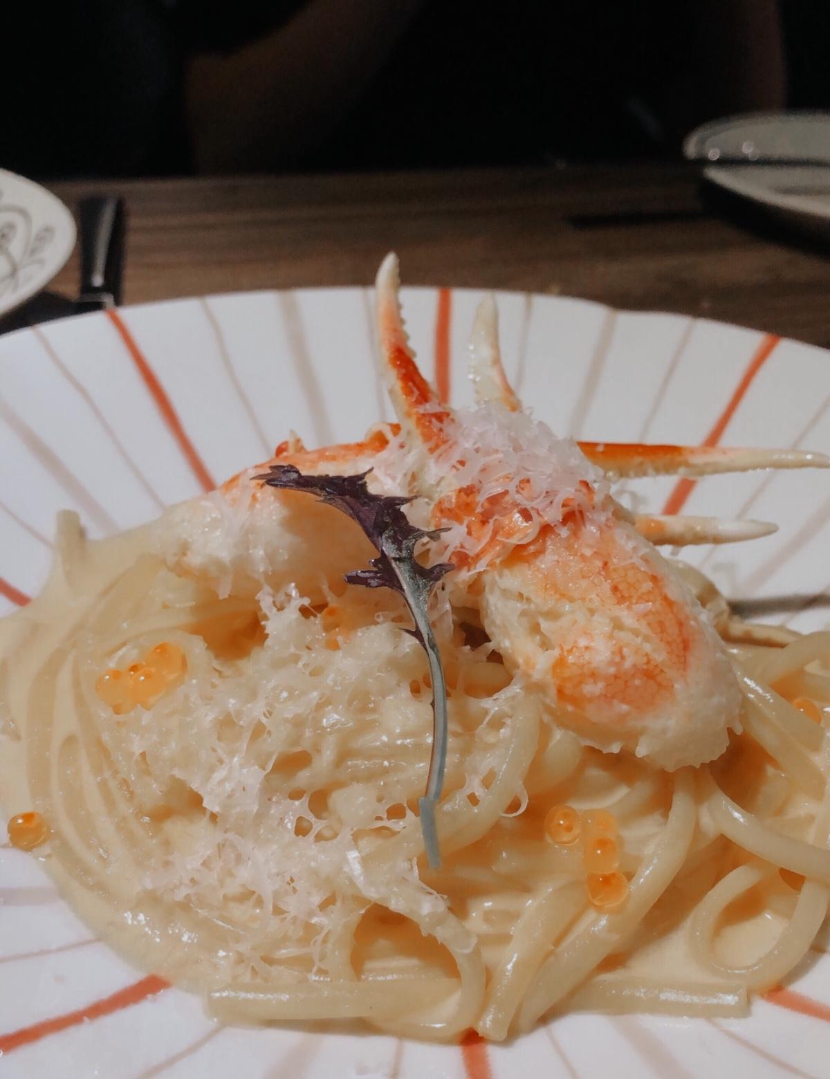 💡松葉蟹鉗義大利麵:有濃濃的海膽味但吃多了會有點膩