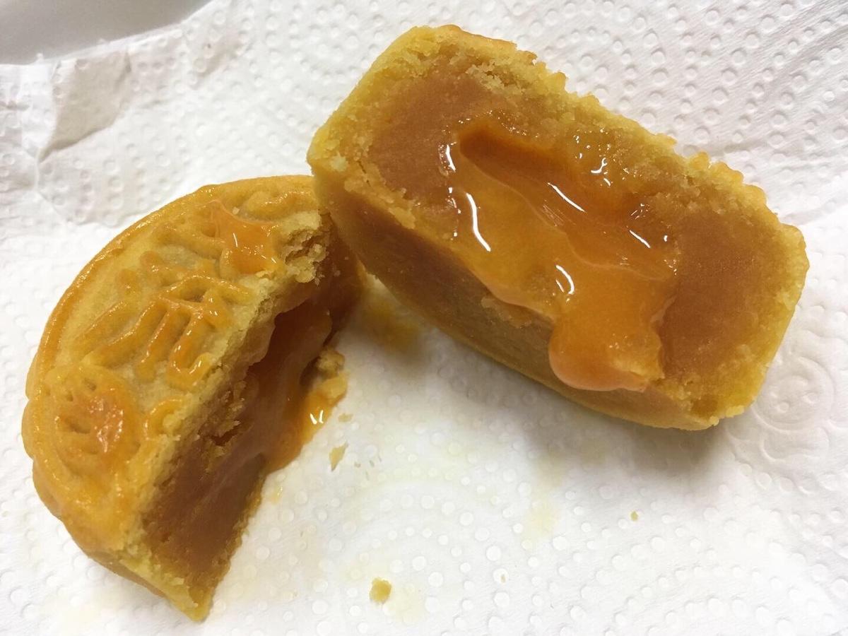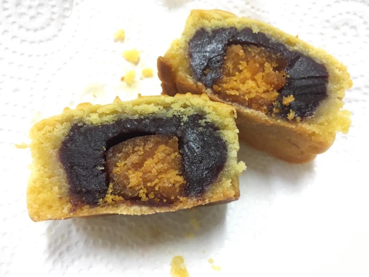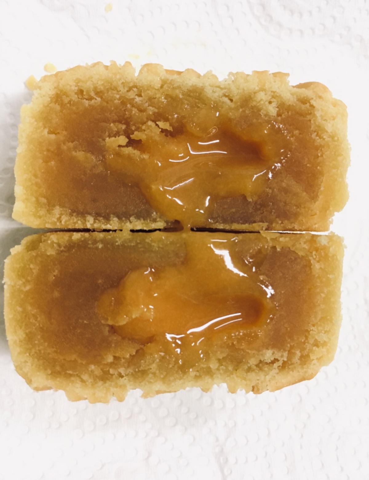 🥮奶皇流芯-真的有流芯,烏鴉買美心的也沒有烤出流心,這是烏鴉第二次看到流出來的(第一個是裕珍馨的桃山奶皇,但是只有一點點,食記後補),豆沙綿密的口感+半流動的內餡,鹹香蛋黃緩緩的流出,是不是很。誘。人,而且可以吃出濃濃的蛋香,也不會有過鹹的口感,整個內餡綿密。鹹。甜。香。烏鴉跟烏鴉媽都覺得比名店的流心還要好吃💕❤️💕