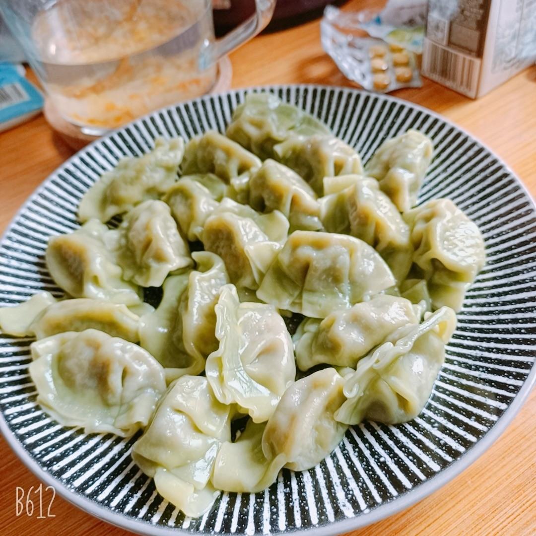 小小噠,綠色菠菜皮,鱈魚餡,開心~