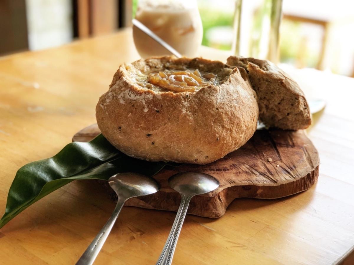 麵包很有嚼勁,搭配洋蔥湯,覺得還不錯!