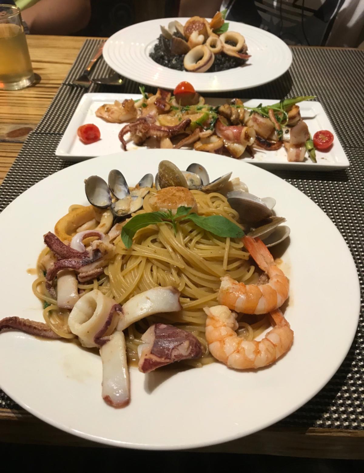 比起義大利麵來說感覺份量好像比較少一點~但是也很優!我弟整盤清光😍