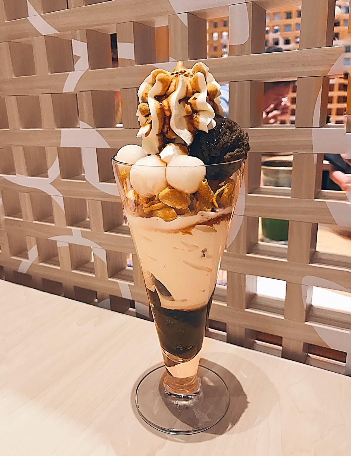 含有鮮奶油/焙茶冰淇淋/白玉麻糬/焙茶泥/玉米片/焙茶凍/黑糖蜜,焙茶冰淇淋吃起來有茶香跟淡淡的苦味,白玉麻糬口感很Q,相較於抹茶我覺得比較沒有那麼甜,我覺得挺適合跟我一樣想吃冰淇淋buffet又不愛太甜膩口味的人。