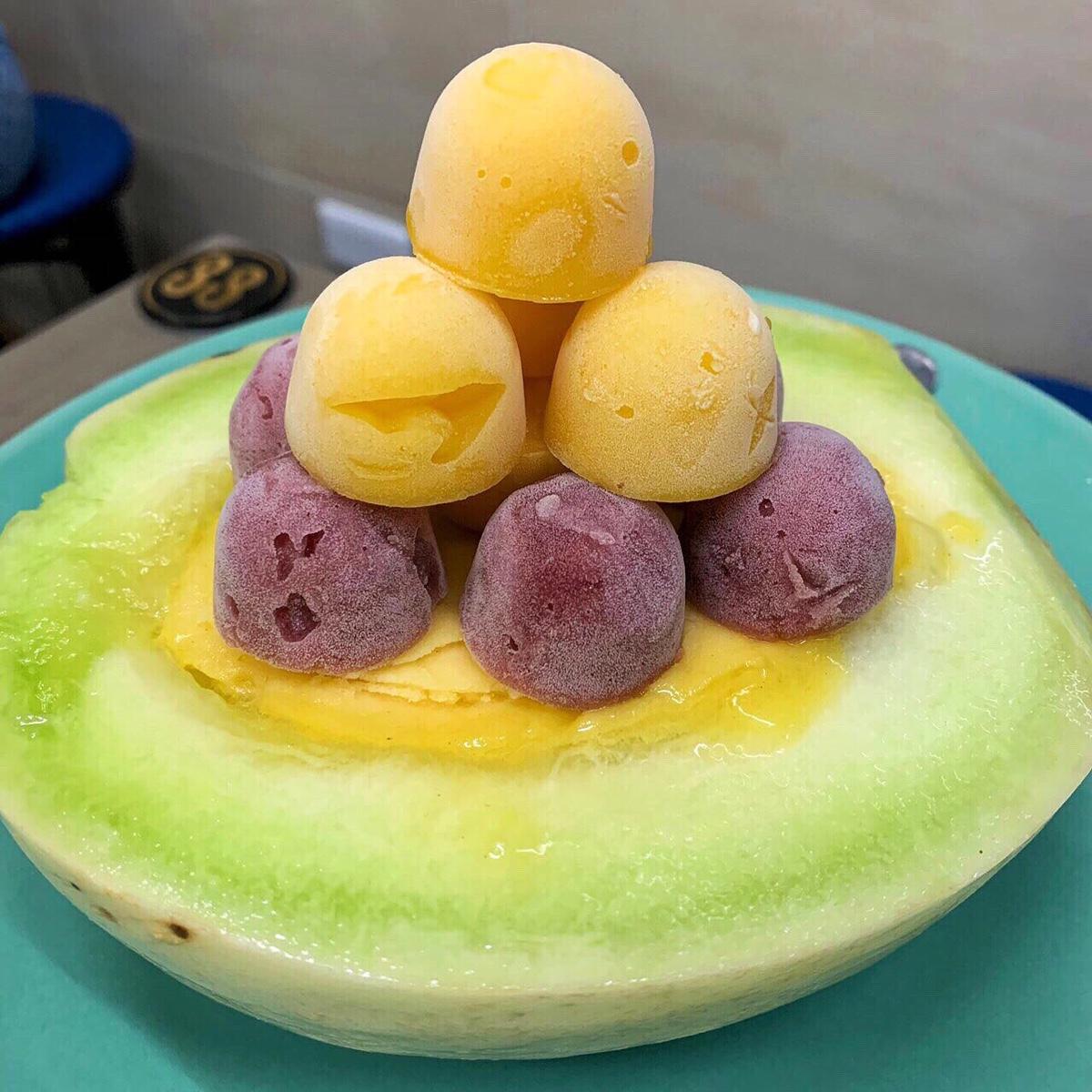 ✏️哈密瓜冰(芒果+葡萄+百香果冰沙) $220