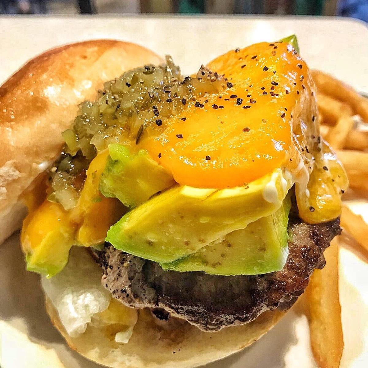 漢堡剛上桌,淋上黃澄濃郁巧達起司的新鮮酪梨切片,視覺上的刺激讓人食慾大開。實際佐上酸黃瓜醬一起吃,濃郁酸甜帶點脂肪的口感在嘴裡一層一層散開,口感蠻新鮮的,除此之外,肉排吃起來有點硬,麵包很普通,整體吃完印象點不是很深,但我也不意外(笑)。