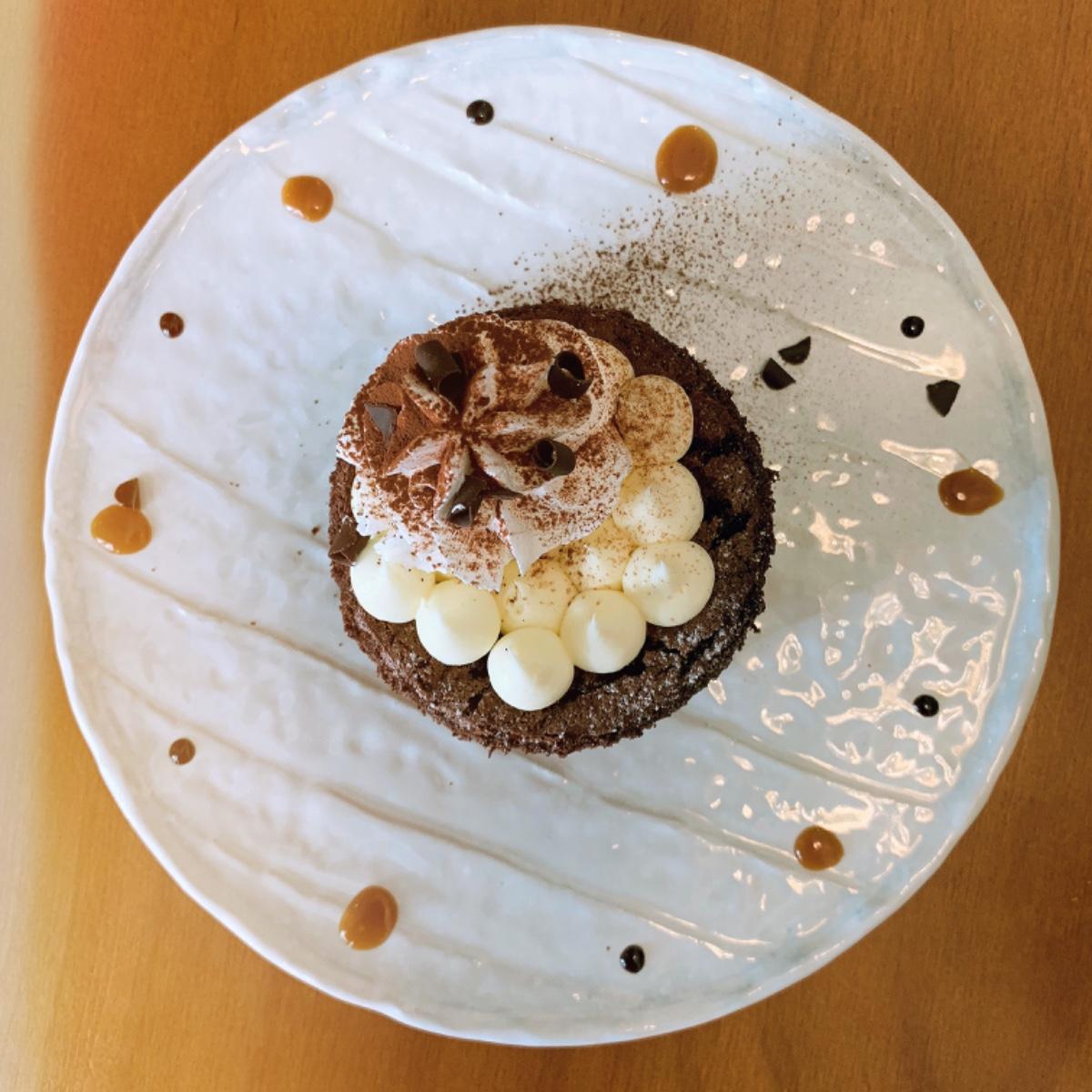 使用德國巧克力製成的濕潤蛋糕體搭配起司餡!菜單上寫推薦2-3個人分食,拜託