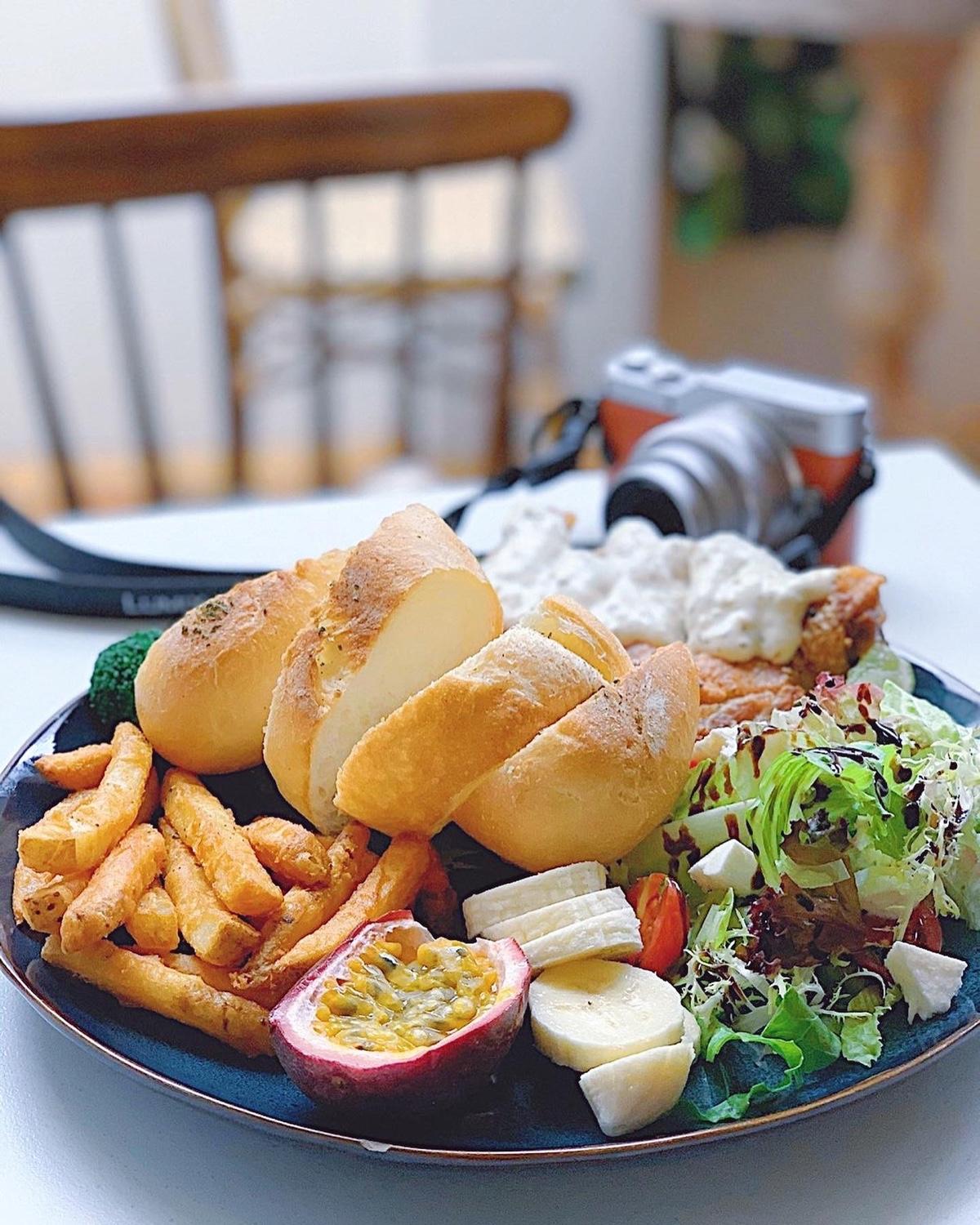 南蠻雞肉最美味!一口一口會停不下來的那種!搭配沙拉烤蔬菜.百香果(?!)還有薯條和軟法,吃完很滿足!
