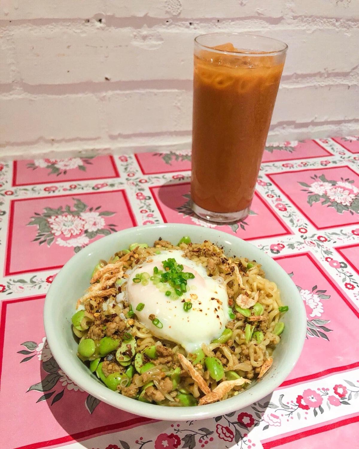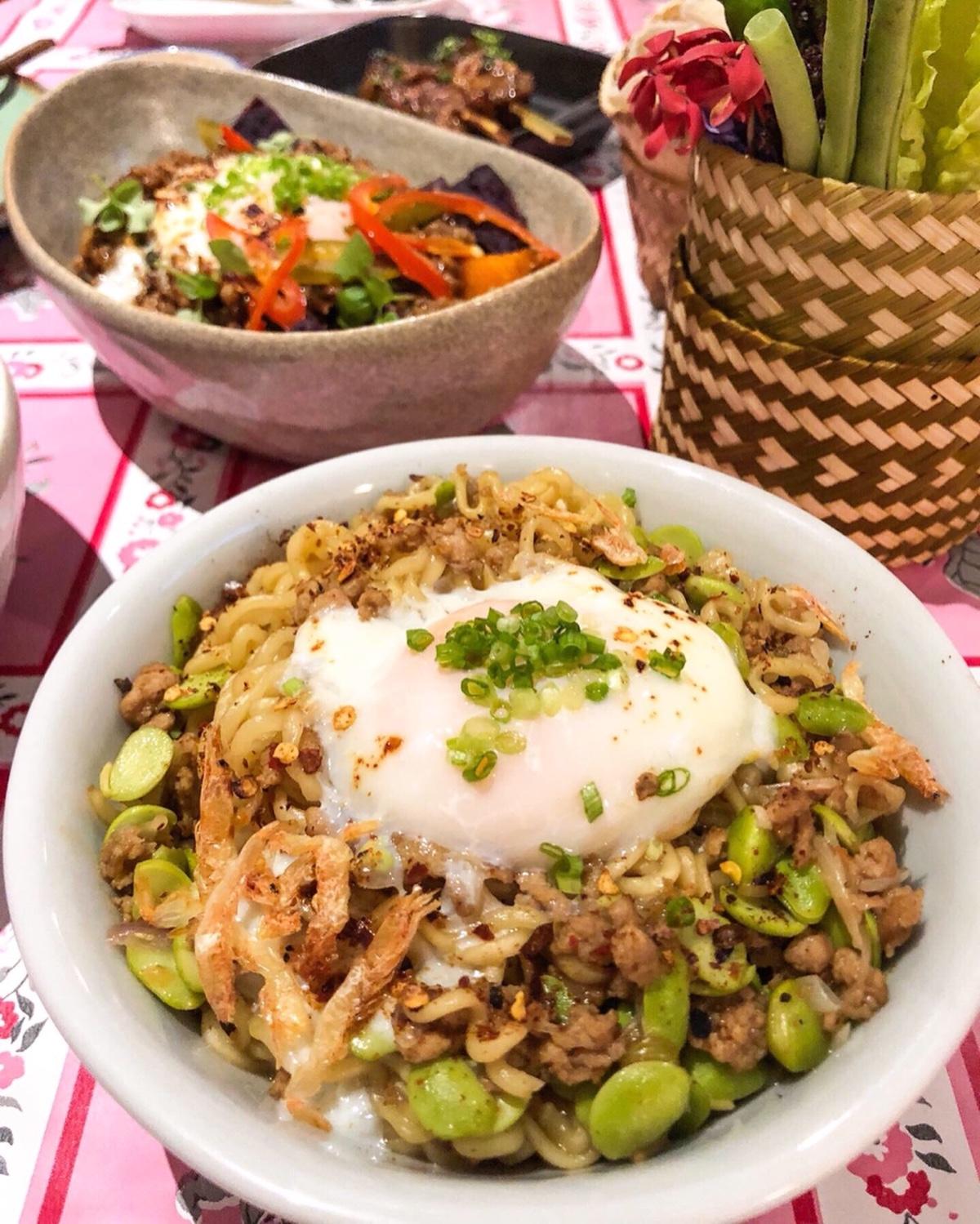 泰國華裔主廚👨🏽🍳 將泰國當地口味與新創料理手法結合 讓每一道料理有了新面貌 讓我印象最深刻#打拋雙色地瓜 🍠 以往打拋豬都是配著飯 這裡的卻是淋在炸過的地瓜上 再放上一顆半熟蛋 攪拌均勻後香氣撲鼻 吃起來毫無違和感😋 #烤寨炒麵 店員推薦我們點的👍🏻 使用韓國泡麵 調味屬於酸又超級辣🌶️ 麵吃完鼻涕狂流還狂灌水 (不吃辣的人千萬不要點😅) #豬肉串 豬肉烤得恰到好處 香甜多汁 (兩串默默都進我肚子了🤤) ❤️IG搜尋:iam.__.nini 可以看到更多不同分享唷!