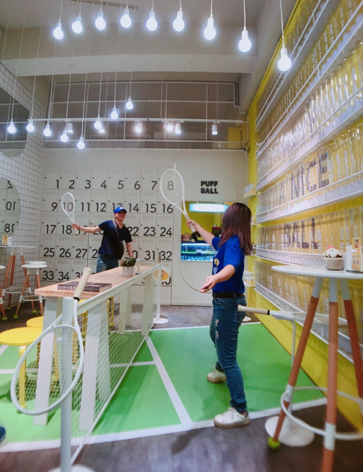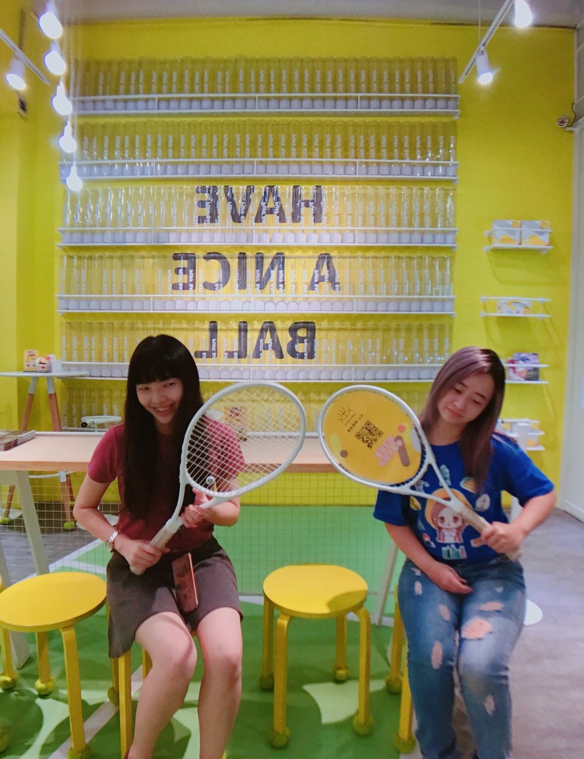 「台中景點」來到網球店吃下午茶?!原來是網球主題餐廳 1 / 9店內造型都是網球🎾取餐去鞋櫃取餐😂桌子是網球拍的造型,椅腳是🎾,還有很多網球拍道具提供拍照📷重點是!泡芙超級酥脆好吃😋 蜻蜓喜歡旅遊、攝影