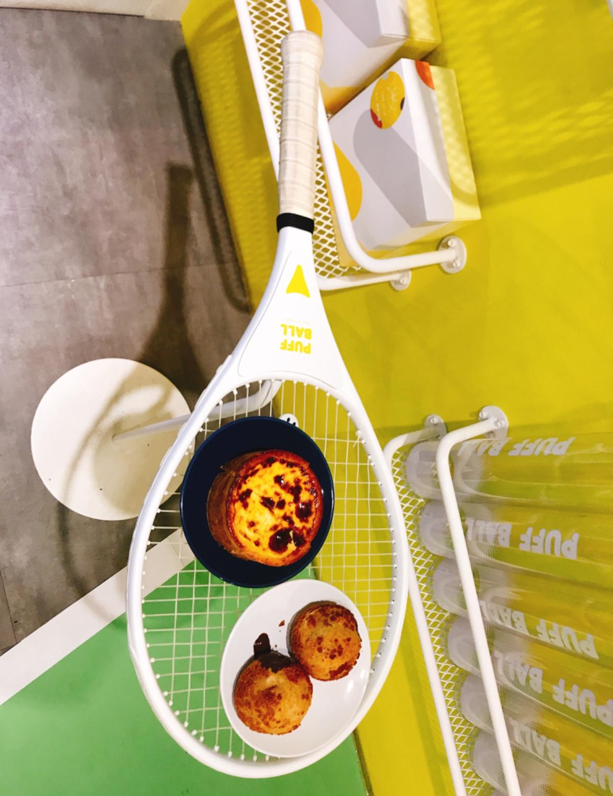 店內造型都是網球🎾取餐去鞋櫃取餐😂桌子是網球拍的造型,椅腳是🎾,還有很多網球拍道具提供拍照📷重點是!泡芙超級酥脆好吃😋