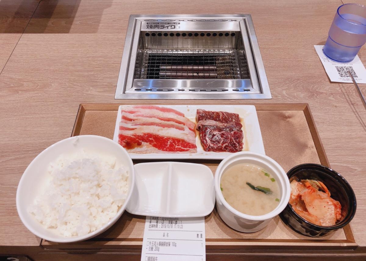 我們點了牛五花+橫隔膜100g套餐,和牛五花+松阪豬200g套餐