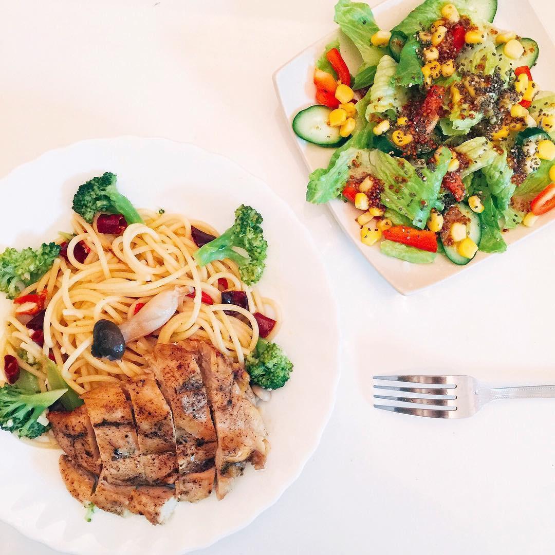 橄欖蒜炒義大利麵🌿feat.嫩煎雞胸