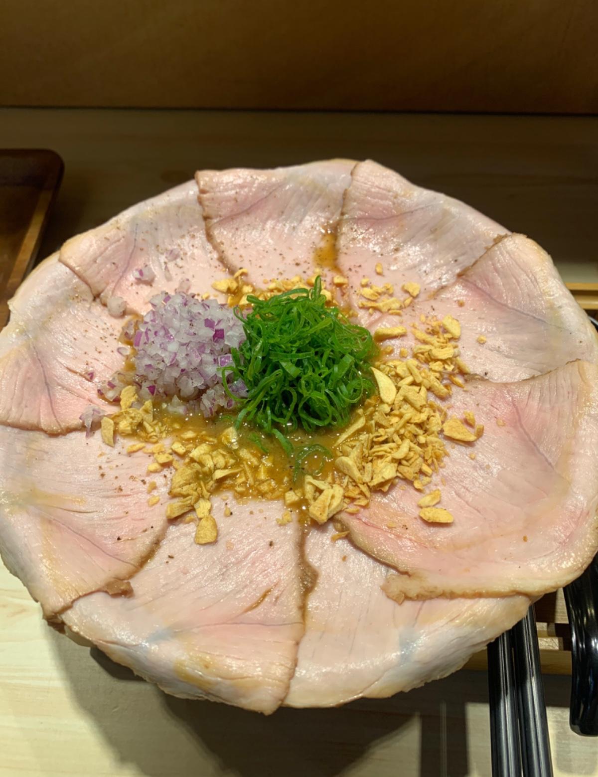 知道這間拉麵已經好一陣子了,每天經過就是長長的人龍,一個屋台型式的路邊麵攤怎麼會有這麼多人排?今天總算知道原委了,拉麵好吃極了,點了濃湯叉燒拉麵和叉燒飯,老闆在備餐前會詢問湯的濃淡和麵的硬度,照著客人的要求料理,我心目中的拉麵就是湯要濃麵要硬。麵一上來,叉燒舖滿了整碗,和蘭丸一樣,但是湯實在太讓人驚豔了,濃郁的蒜味湯頭,將碎紫洋蔥青蔥蒜酥叉燒拌入湯裡,配上偏硬的麵條,所有的味道在嘴裡經過咀嚼,味道整個融合在一起,實在太好吃了。一邊吃著麵,一邊聽著老闆溫暖大氣的喊著加麵加湯都不要客氣,舒服!