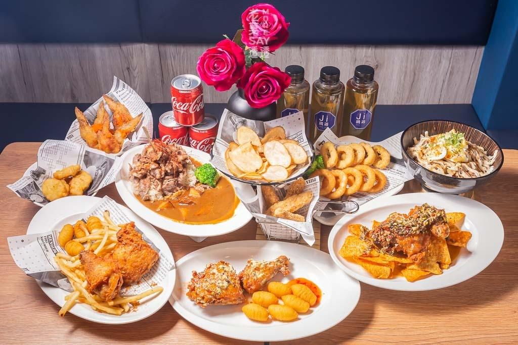 餐點種類包含了特選炸物、蓋飯、冷泡茶、氣泡飲料以及各式醬料與粉料。雖然說是炸物專賣店,不過饑遇除了有十多種炸物選擇,更有老饕必吃的艋飯口碑蓋飯,另外為了讓炸雞能充滿不同的異國風味,饑遇也販售了多樣醬料,從火辣的川味、酸甜的韓式柚香到香濃的椰香綠咖哩都應有盡有!每天換一種口味,天天吃也都沒問題!