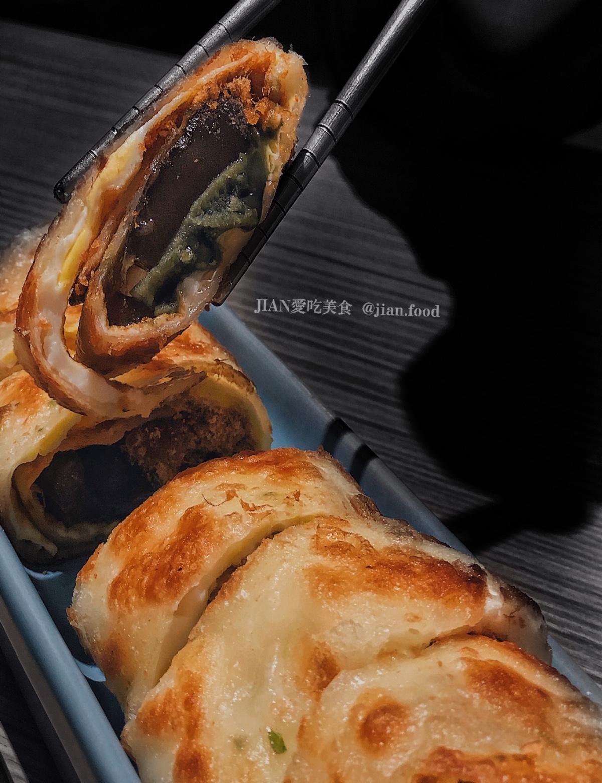 主打手工蛋餅,皮酥脆,內層軟嫩,皮蛋QQ的口感,肉鬆入口即化,鹹甜鹹甜