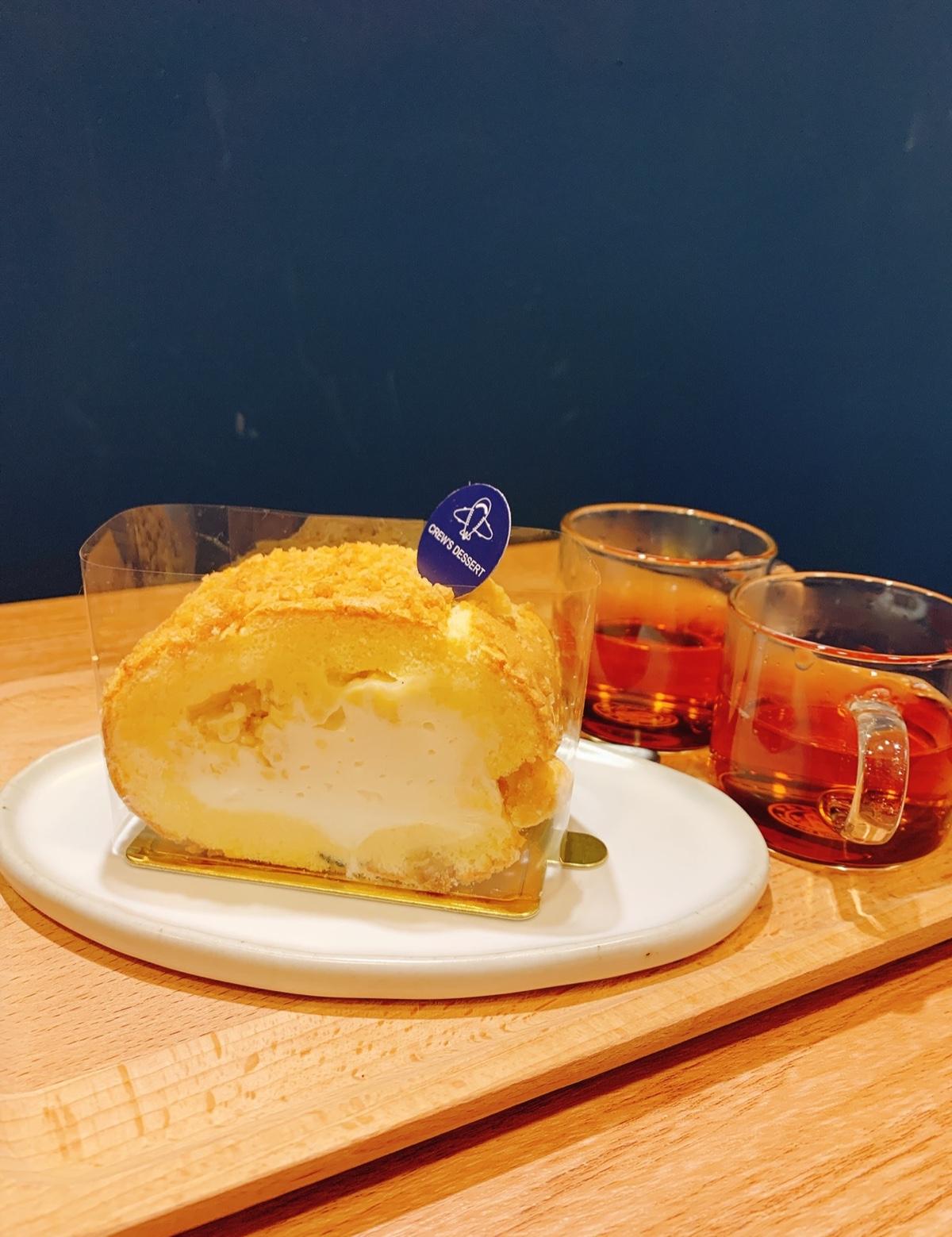 今天吃的是脆皮(?)生乳捲❤️奶油超好吃😋有夠幸福...下次想試試看三角蛋糕🍰芋頭~~~