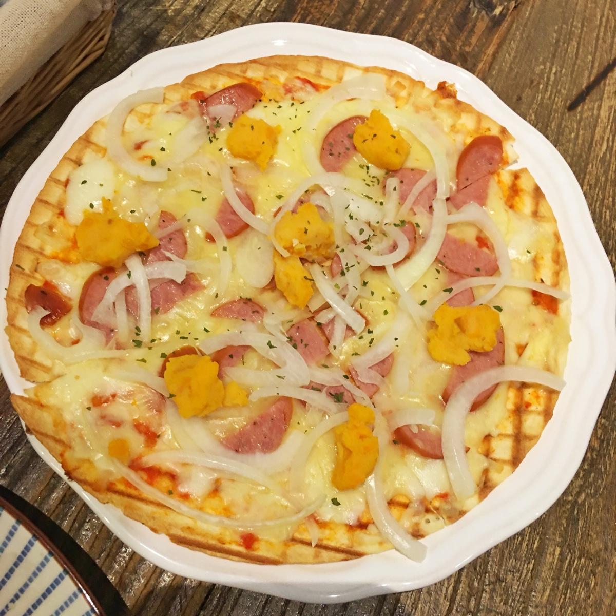 德式聖誕口味的材料是德式香腸、薯泥、洋蔥