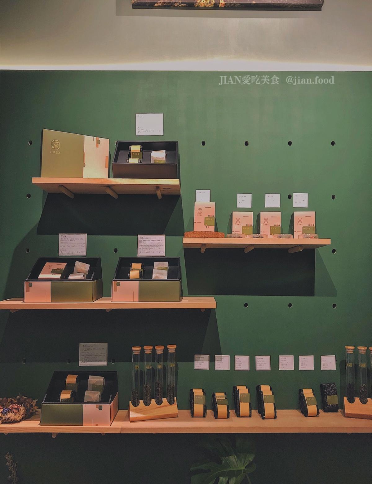 櫃台左手邊有一面商品牆,販售茶葉禮盒等等商品